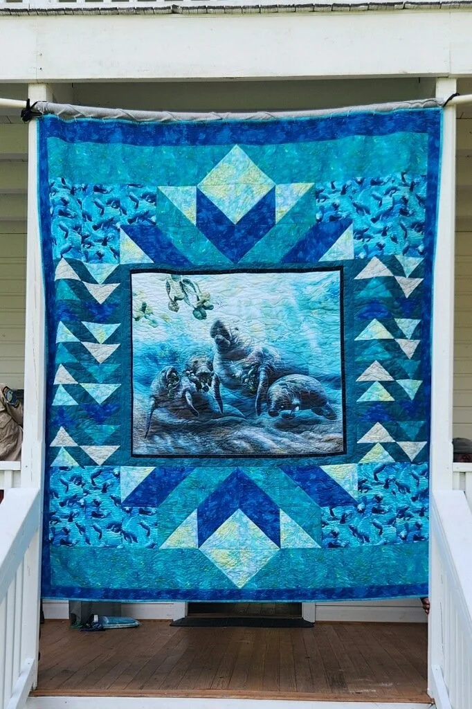 Once again, our fabulous volunteer Kellie has custom made a beautiful Queen Sized Manatee Quilt!