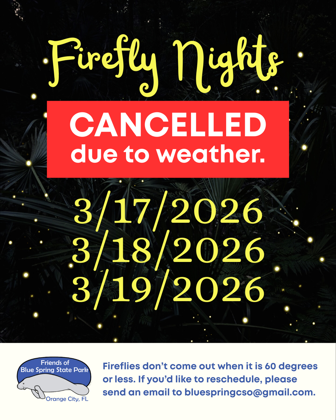 Prepare to be enchanted as the trees along the boardwalk glow with the soft, shimmering light of fireflies. Beginning Friday, March 13, the forest at Blue Spring State Park transforms each evening as hundreds of fireflies rise from the forest floor and dance beneath the canopy. It’s one of Florida’s most breathtaking natural spectacles—and we’re thrilled to share it with you.