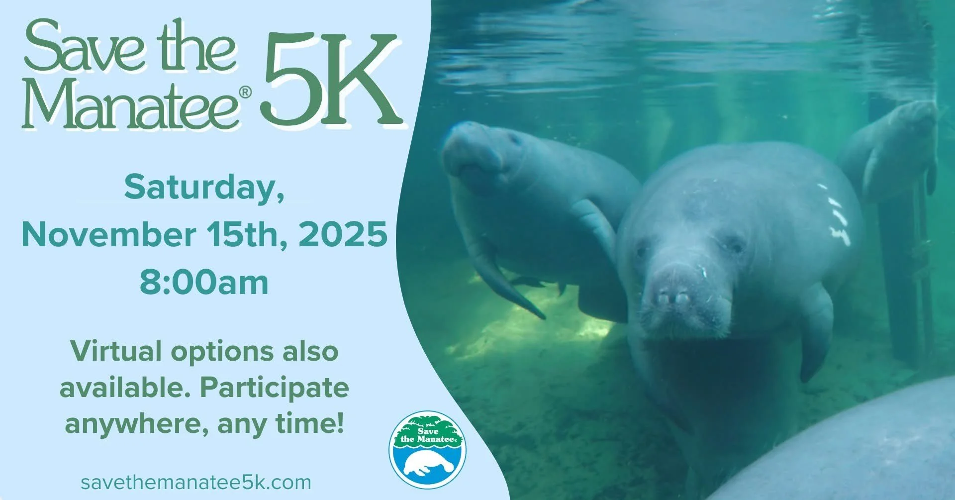 This date marks the first day of Manatee Season for the fall/winter months and is in the middle of Manatee Awareness Month. The 5K encourages raising awareness and funds to protect manatees and their habitats. We can’t wait to see you in the park!