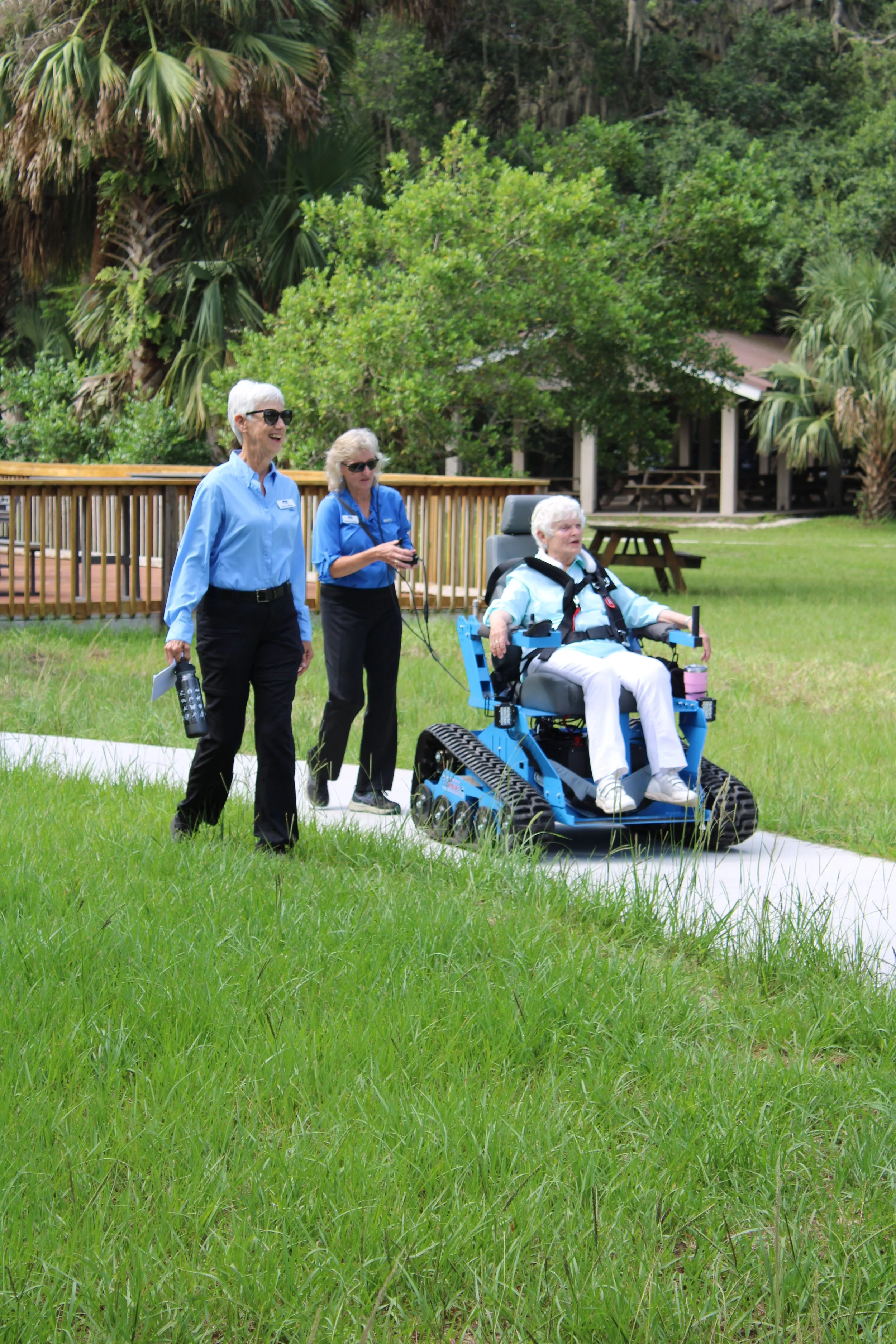 The Rolling Hike Program at Blue Spring State Park is an innovative program intended to help mobility-challenged park visitors navigate some of the park’s hiking trails with the use of an all-terrain tracked chair.